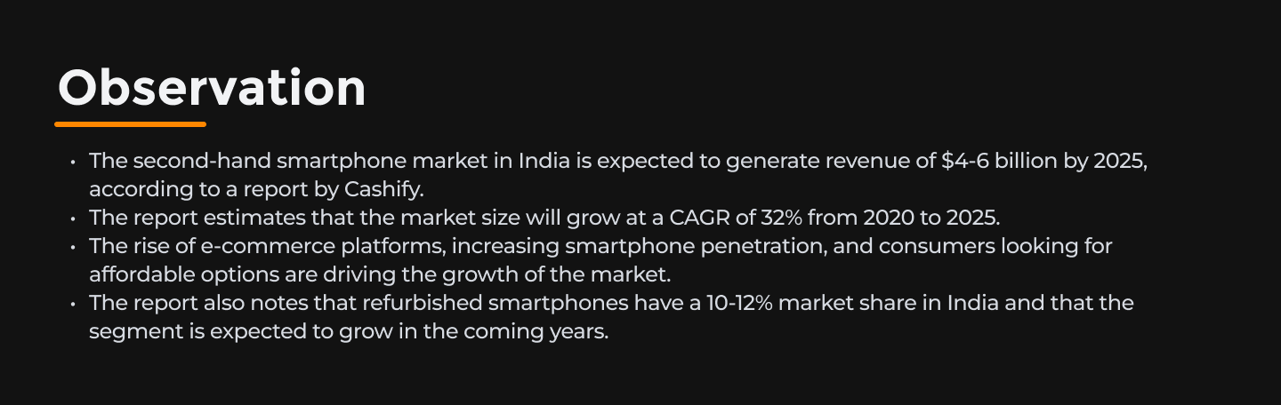 Market lacks a user-friendly platform for repairing premium and semi-premium cell phones. Current competitors offer used and refurbished electronics, but there is a need for a reliable platform that focuses on repair with a brand-like experience and responsive customer support.