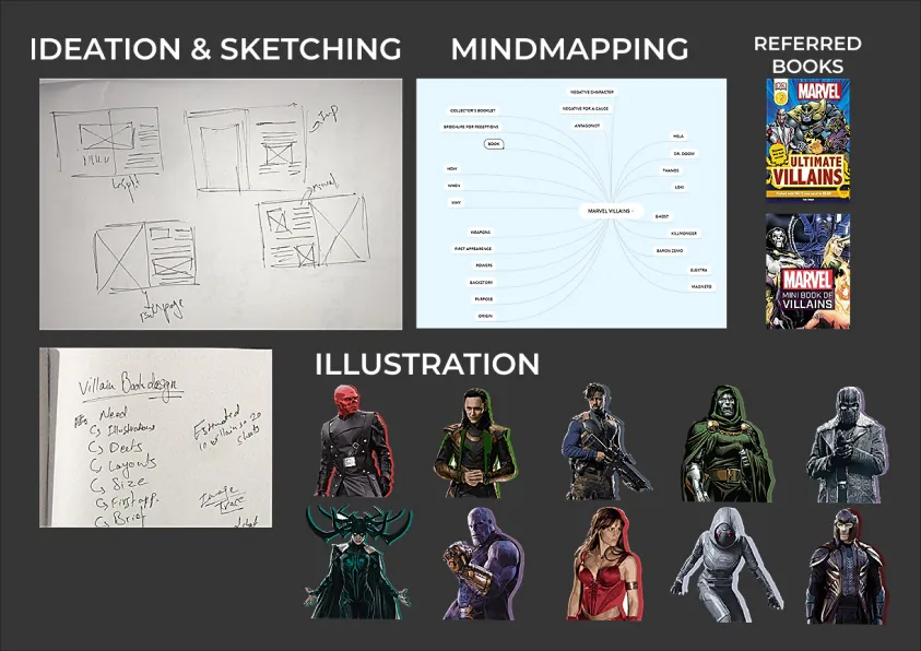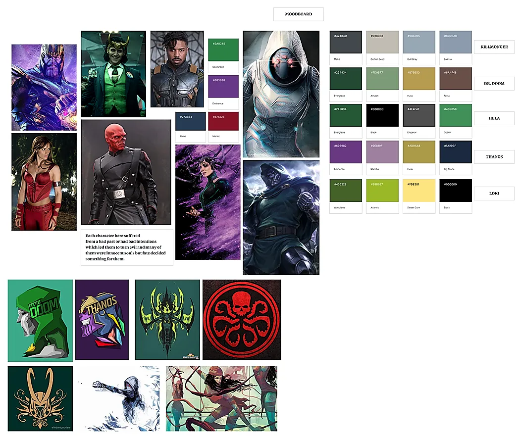 This assignment was the final assignment of our module 'Print Media' and me being a Marvel Fanatic I wished to do something related to MARVEL COMICS. I was going through a rough patch during that time and it reminded me of the villains. All heros have inspiring backstories on how situations made them who they are but what about the villains? Some tragedies might've happened in their lives too which led them to this path of destruction and sorrow. This single thought was enough for me to start my research and to know more.
